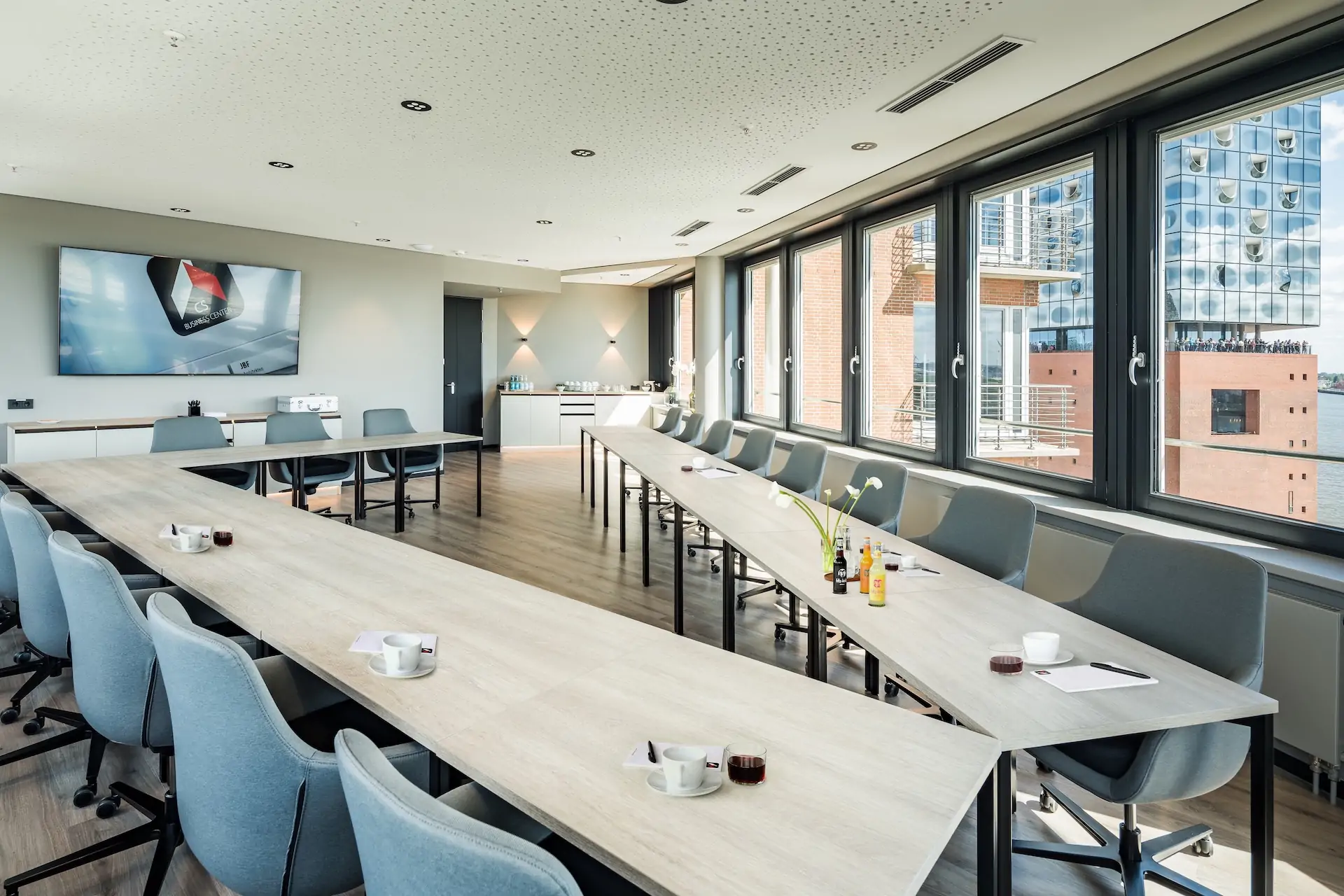 Unsere Räumlichkeiten bieten Raum für Begeisterung, und nicht nur schlichtweg Raum für Konferenzen, Events, Incentives oder Tagungen. Denn die breite und hohe Fensterfront in unserem Business Center in der HafenCity lädt ein, direkt und live einzutauchen in das atemberaubende und sich permanent ändernde Schaubild der Elbe und des Hafens. Begegnungen auf der Business-Bühne werden hier zu bleibenden Erinnerungen. Alle Beteiligten in diesen Räumen wird dieses visuelle Szenario miteinander verbinden. Die beste Basis für wichtige Meetings, Tagungen, Events, Incentives und jede Konferenz. Besuchen Sie uns am besten gleich, dann erleben Sie, wovon wir schwärmen.